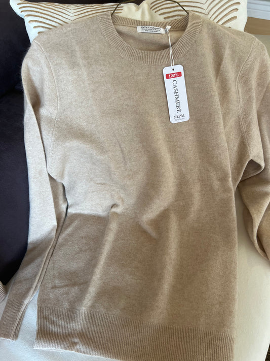 Beige Cashmere sweater with round neck