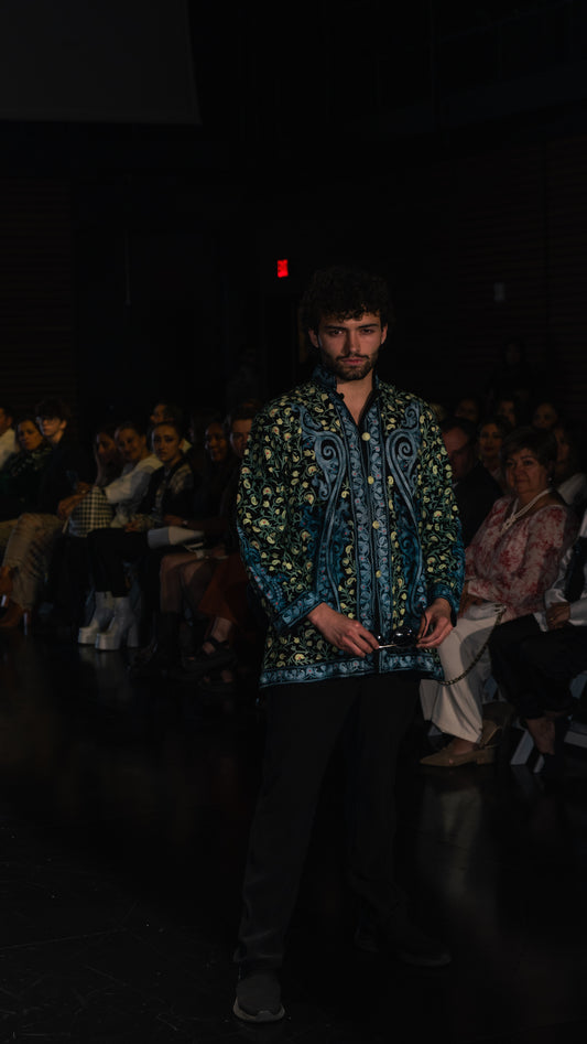 Green and white Long Artisan Coat